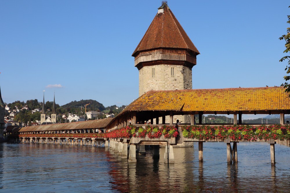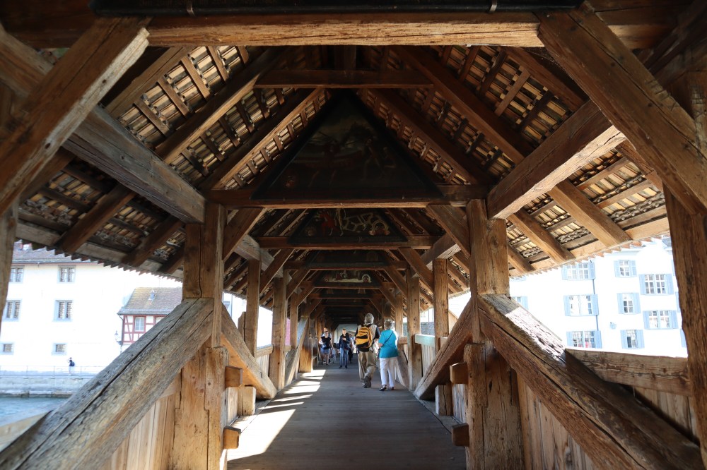 Luezernin silmiinpistävin ja kaunein näkymä ja maamerkki oli sen puiset sillat Kapellbrücke, jotka ovat peräisin vuodelta 1333. Ne huokuivatkin kunnioitettavaa ikäänsä ja arvokkuuttansa. Aivan loistavaa, että tällaisia kohteita ei ole tuhottu ja pistetty maantasalle, vaan ymmärretty säilyttää ne jälkipolville.