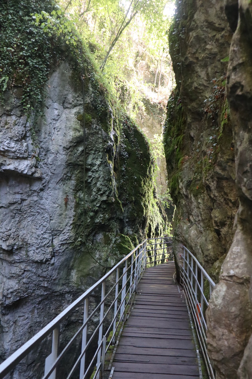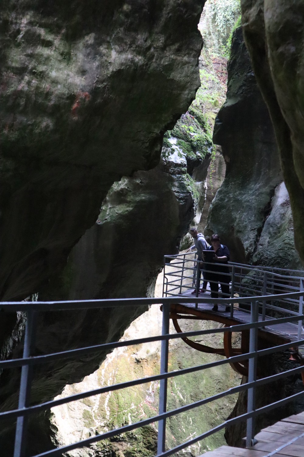 Kapea kallioon kiinnitetty kävelysilta lähti kiemurtelemaan korkeuksiin ja oli pääsääntöisesti niin kapea, ettei ollut asiaa ohitukseen, muuten kuin pysähtymällä ja siirtymällä kallion tai kaiteen puolelle. Onneksi olimme ensimmäisien joukossa, eikä ruuhkaa ollut.