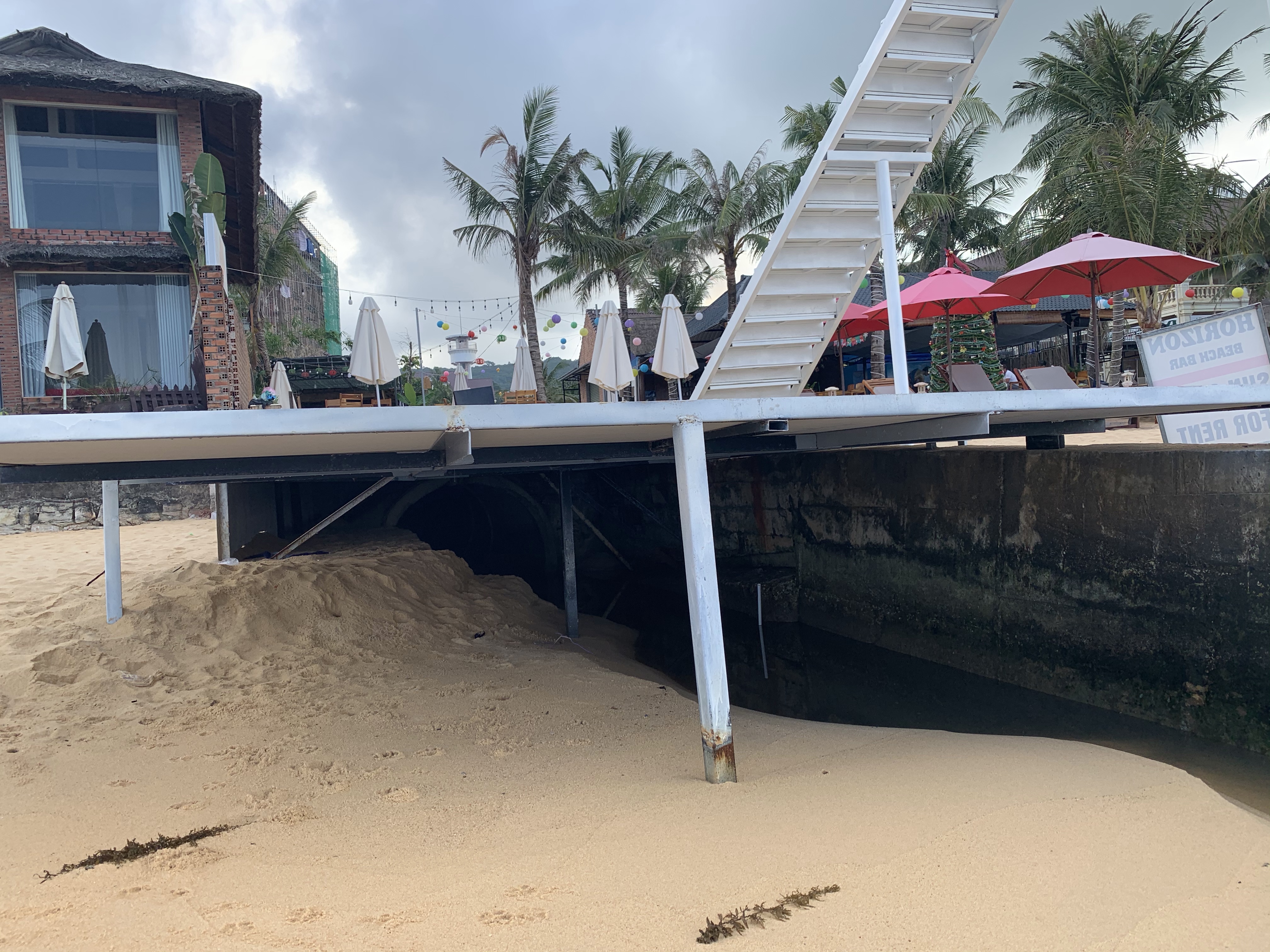 Ensimmäisenä päivänä täytyy aina käydä katsastamassa ranta päästä päähän ja niin teimme nytkin. Ranta oli aika kapea ja viettävä ja siinä taaplatessamme totesimme, että ei tarvitse tehdä sitä välttämättä enää uudelleen ainakaan sen jälkeen kun loikimme viemäriputkien yli, josta juoksutetiin harmaan mustaa, pahalta haisevaa ”vettä” suoraan rantaveteen. Kyllä juuri siihen, jossa pikkulapset leikki iloisesti ja kauhoivat vettä iloisesti pärskien.