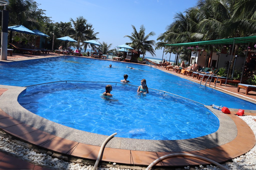 Hotellin yhteydessä oli rantaravintola, joka tarjosi todella loistavaa ruokaa ja suosittelen sitä kovasti, sillä sieltä sai muutakin kuin Vietnam -ruokaa. Aamiainen oli ja se oli riittävä, ei erityismainintoja, joskin olisi välillä toivonut vähän vaihtelua.
