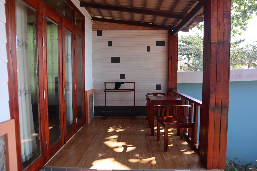 Muutama sana hotellista. Meidän huoneisto oli vain noin 20 metrin päästä merestä ja huoneisto oli maininnalla Luxury bungalow with seawiev. Oma terassi, sisällä pieni oleskelutila ja makuutila ja kylpyhuone. Hotellin luokitus paikallisen luokituksen mukaan oli kolme tähteä. Sisustus oli varmastikin ihan alkuperäinen ja kaipasi kipeästi kohennusta. Mutta sijainti oli loistava ja näkymät sitä mitä odotimme ja henkilökunta oli erittäin ystävällistä ja tekivät kaikkensa, jotta vierailla olisi kaikki kunnossa. Tuntui jopa hieman kiusalliselta välillä aamiaisella kun paikan markkinointipäällikkö kävi kysymässä säännöllisesti joka aamu, onko kaikki hyvin ja kuinka voitte. Mutta selkeästi ja aidosti he välittivät vieraistaan ja jos oli jotain toiveta se pyrittiin täyttämään samantien, se oli hyvä tunne ja se tuli oikeasti aidosti.