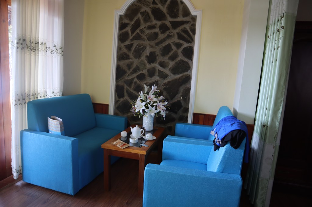 Itselläni oli hieman vieläkin työstessin oireita ja nukkuminen sen mukaista ja varmaan sekin näkyi ulospäin. Edellisen hotellin muhkeasta sängystä ja upottavista ihanista tyynyistä oli vain muisto ja ensimmäisen yön jälkeen yrittäessäni nukkua betonityynyllä ajattelin, että se oli ensimmäinen asia, joka täytyy muuttaa. Joten sitten tuumasta toimeen, onneksi tyynyssä oli vetoketjut, joka helpotti täytteiden puolittamista, sitten tarvittiin vielä toinen samanlainen tyyny, jonka pienen esittelykierroksen jälkeen saimmekin ja ahh, se oli jo paljon parempi.
