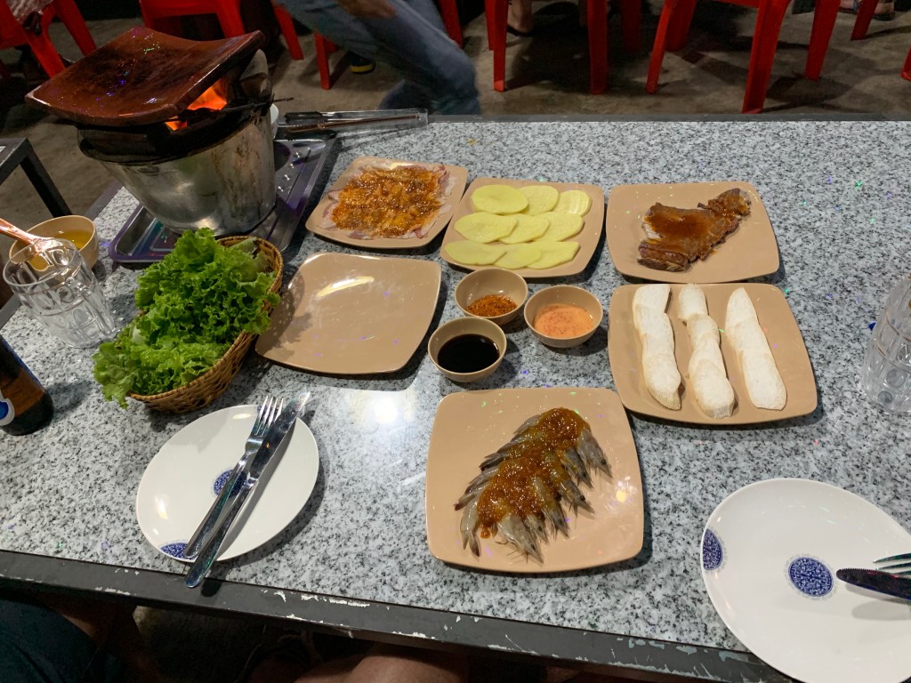 Mutta tottakai siellä oli hyviä ruokapaikkoja ja emme nälässä eläneet, mutta vältimme tai yritimme välttää vähänkin epämääräisemmät paikat ja vältyttiin varmaan sen ansiosta myös vatsaongelmilta. Joskin olimme jo valmistautuneet asiaan ja olimme popsineet maitohappobakteereja jo n. Kuukauden ennen reissua. Yhtenä päivänä eksytiin sitten paikkaan, jossa sai itse valmistaa ruokansa grillaten, joka oli ihan mukava kokemus.