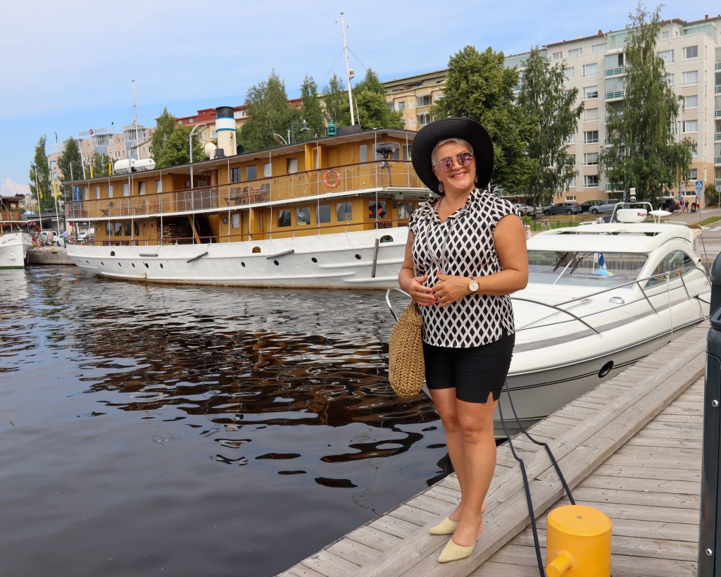 Ensimmäiseksi hyppäsimme risteilypaattiin, jossa kiersimme koko kaupungin katsellen ja ihastellen sitä vedeltä päin. Onpa todella hienoa, että meillä täällä Suomessa on säilytetty näitä sisävesilaivoja ja niistä on pidetty huolta. Täällä niitä sai ihastella laivasatamassa, jotka olivat toinen toistaan komeammassa kunnossa.
