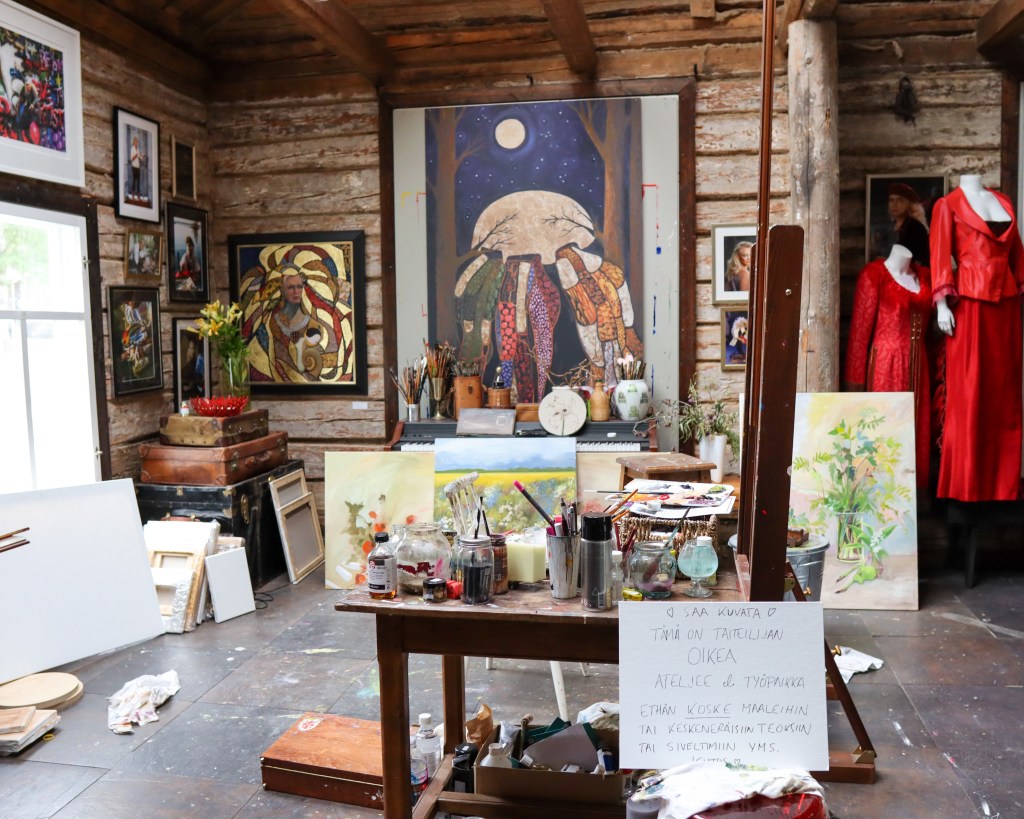 Sitten vielä piipahdus Johanna Oraksen taidenäyttelyssä ja itse taiteilijan työtilassa, joka sijaitsi aivan siinä Saimin hotellin nurkilla.