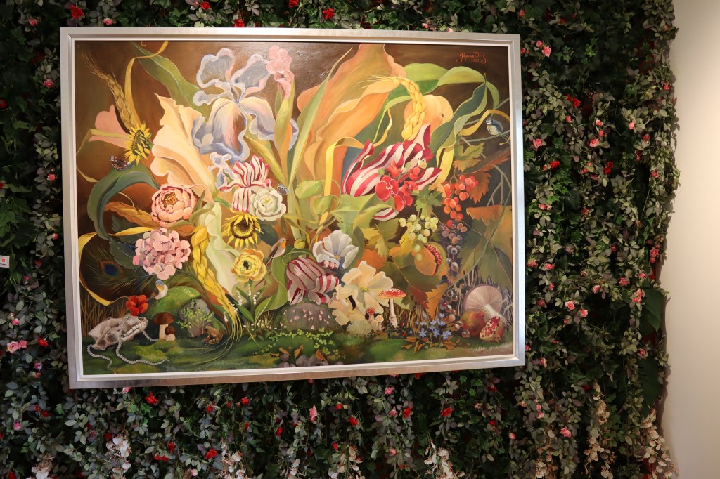 Seuraavana kohteenamme ole Jukka Rintalan näyttely niin torin laidalla kuin museollakin. Saimme hyvän tietokattauksen myös hänen puolisoltaan tonttujen elämästä ja niiden historiasta. Nuo näyttelyt olivat kyllä upeita joista toistaan upeammat pukuluomukset oli asetettu hienosti esille taulujen rinnalle.