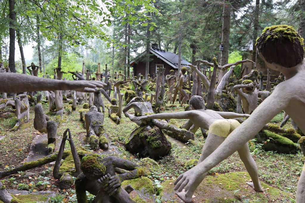 Seuraavana aamuna suuntasimme edelleen lähemmäksi itärajaa Lappeenrantaa ja reittivalinnaksi otettiin hieno Punkaharju maisemareitti, jota suosittelen kulkemaan, mikäli tänne suunnalle eksyy. Matkalla Lappeeseen poikkesimme vielä Parikkalan Patsaspuistossa. Olipas siellä valtaisa määrä patsaita, joista osa sai kasvot jopa punastumaan. Tämä on maamerkki yhden ihmisen elämäntyöstä, jota jo itse lapsena siitä ohikulkiessamme aina ihmettelimme, joskin tuolloin ne eivät olleet vielä yleisölle vapaasti katseltavissa. En ole missään maailman kolkassa nähnyt näin paljon yhden henkilön tekemiä patsaita yhdessä paikassa. Yksi hieman vastaava oli Koh Kood:lla, jossa oli hieman samanoloisia patsaita metsän keskellä, mahtoivatkohan olla sielunveljiä tietämättään. Hienoa, että tästä pidetään nyt huolta ja ihmisvilskeestä päätellen kävijöitä riittää ja toivoa vaan sopii, että kukaan ei näihin pura kiukkuaan hävitysmielessä.