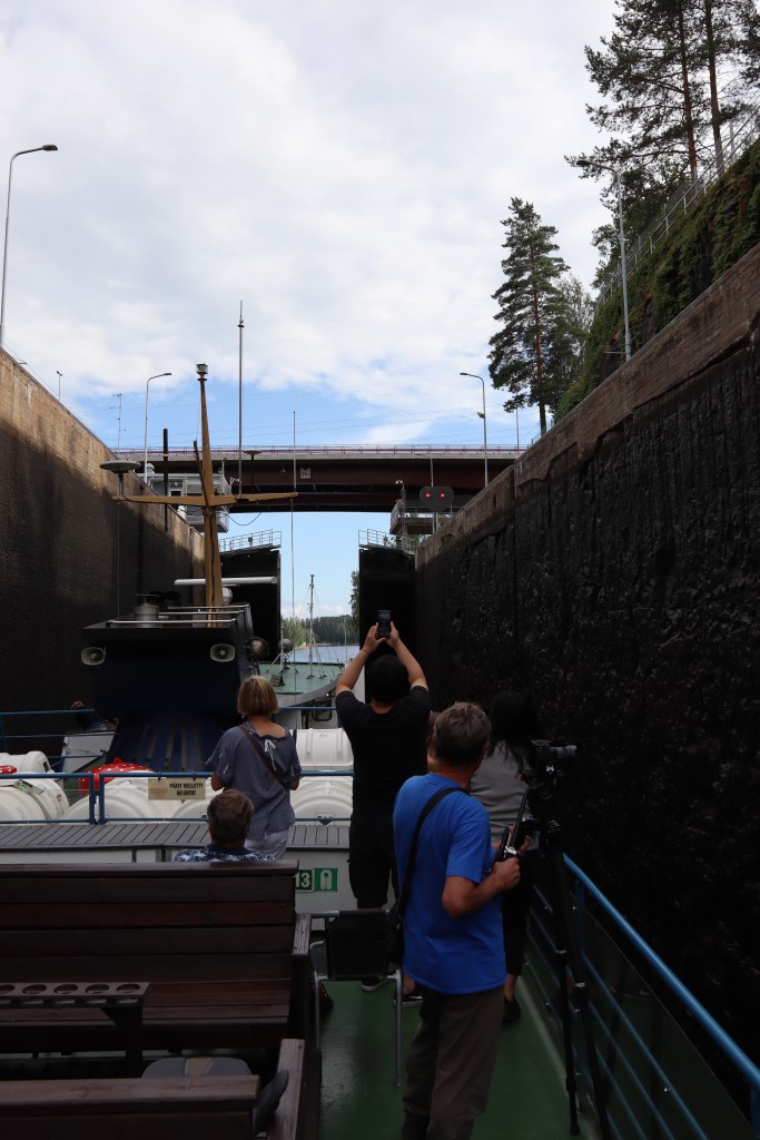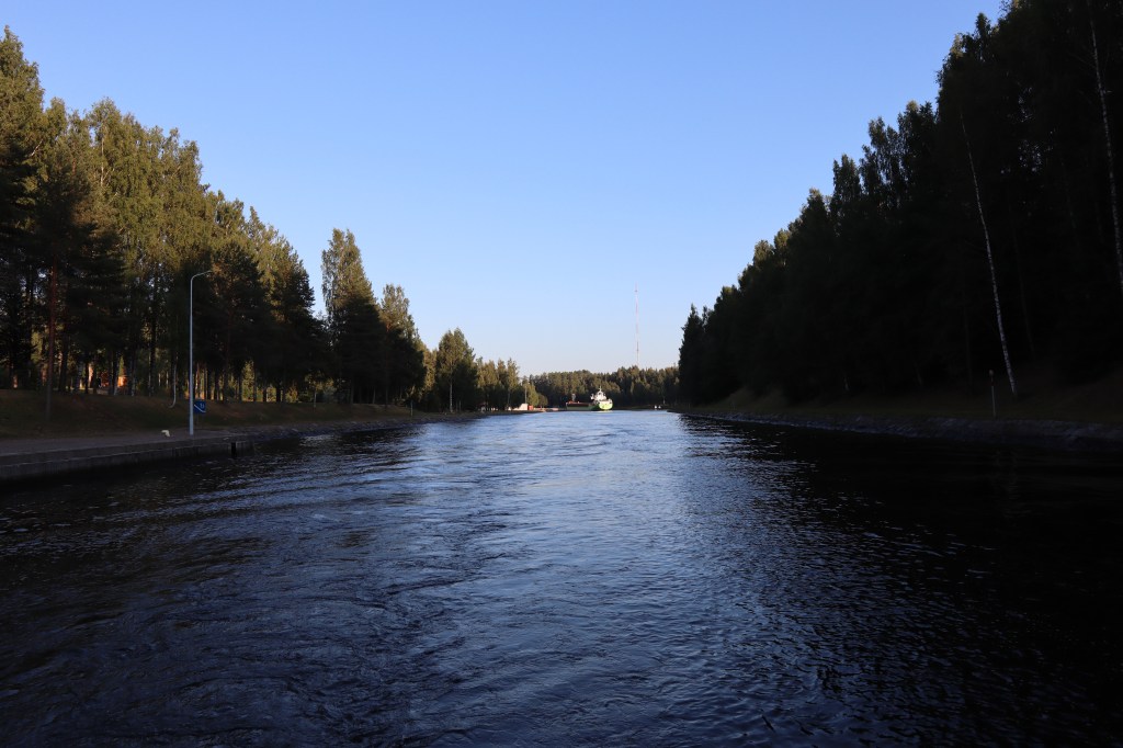 Näköjään sisävesiteema jatkuu, sillä seuraavana meillä oli Saimaan kanavan -risteily illallisen kanssa. On siinä kivi poikineen laitettu pengerryksiin ja kaivinkoneet saaneet eräänkin motin kaivella uomaa meidän ja naapurimaamme välille ja kun ajattelee sen sitä kautta, että 1800-luvun työkalut eivät olleet ihan tätä päivää, niin hatunnosto arvoinen suoritus. Yllätyksenä tuli se, että kuinka vilkasliikenteinen tämä kanava on ja se, että osa tuosta kanavan maasta on vuokrattuna Venäjältä, jonka takia se on siinäkin tapauksesssa ainutlaatuinen.. Kävimme sitten pyörähtämässä Venäjän rajan tuntumassa, jossa raja on keskellä vesistöä. Tämä reissu varmasti on edistämässä ajatusta lähteä joskus Viipuriin risteillen, joten annetaanpa sen jäädä hautumaan. Siinä ilta vilahti todella nopeasti ja sitten olimmekin jo ihan valmiita jälleen nukkumaan, joten hotellille lomps. Yöpymispaikkana oli Hotelli Lappee.